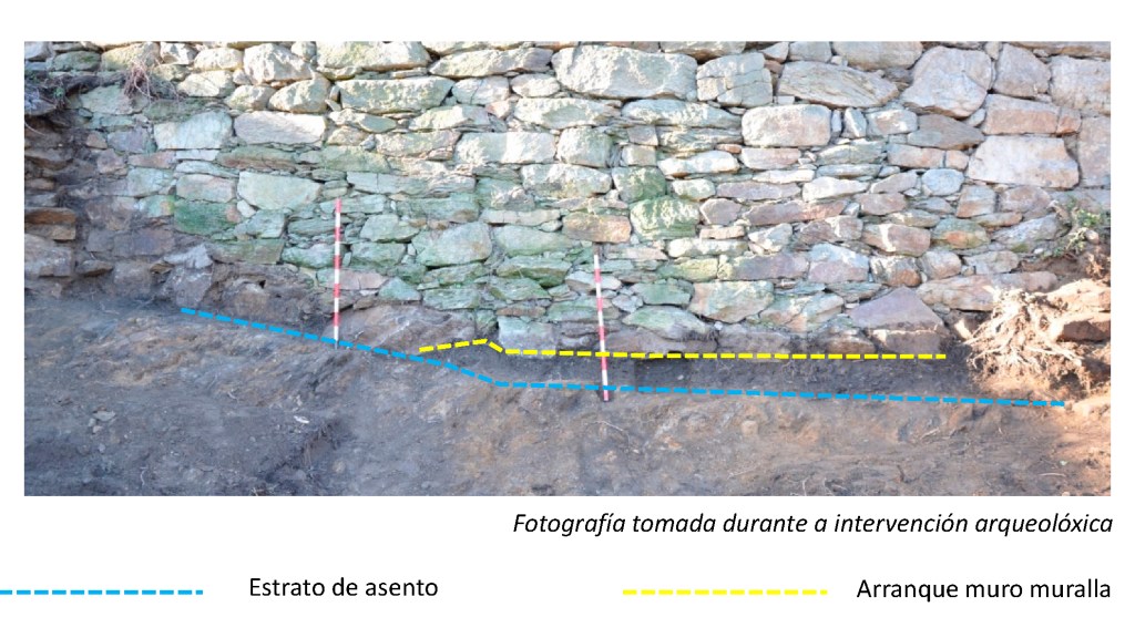 Durante a obra realizouse un estudio arqueolóxico da cimentación, a cargo de Eduardo Bregán Nieto, de Breogán arqueoloxía, que aclara datos sobre a existencia do foxo e a cota orixinal da parcela, facendo unha diagnose do estado actual da muralla neste tramo.