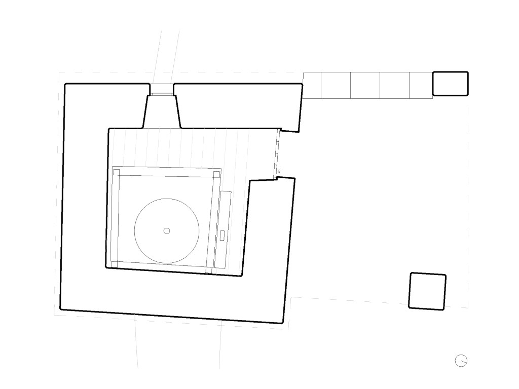 Consolídase a estrutura de fábrica de cachotería. Na fachada suroeste ábrese un oco ilumine con luz natural a zona de traballo e rebaixase o muro do pórche transformándoo en banco.