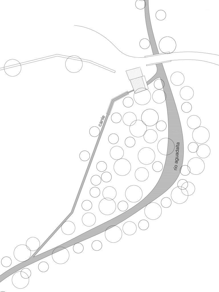 En el exterior trabajara el entorno del molino, pavimentando los accesos con las losas de pizarra procedente de la vieja cubierta colocadas sobre una cama de arena. Se mejora el drenaje del agua y se limpia el canal que suministra el agua desde lo río.
