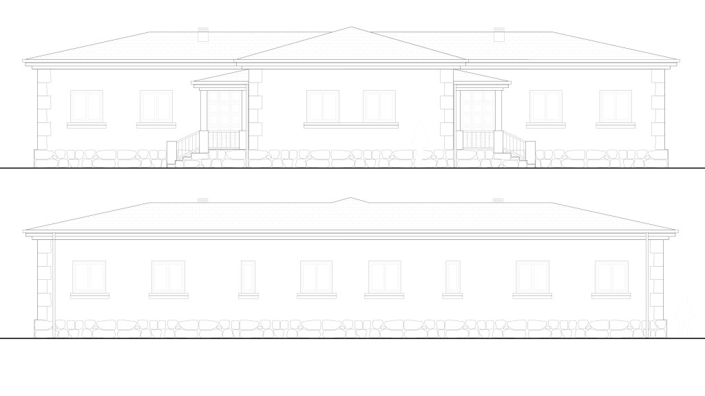 El proyecto conserva los elementos característicos de la construcción original, reparando las partes vistas de granito vistos, pintando los enfoscados y molduras y renovando las ventanas con contra del mismo color verde.