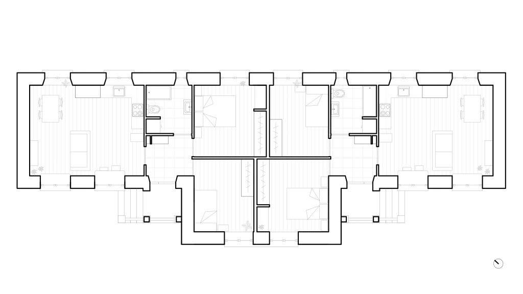 Se actualiza su distribución, unificando el salón y la cocina en una sola pieza, y reorganizando la posición de los armarios en las habitaciones para aumentar su capacidad.